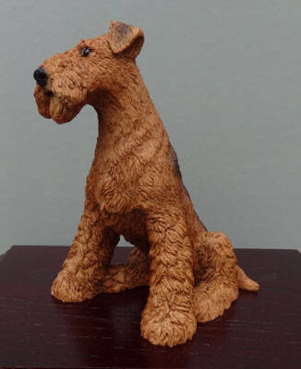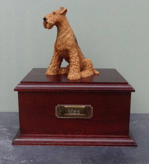Hardhouten urn met Airedale Terrier
